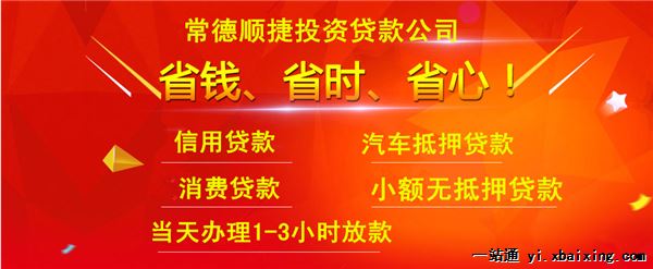 常德市区小额贷款,低息,无抵押,资金整合双赢,当天下款 (一)常德小额无抵押贷款 1:借款条件:常德居民户口,年满18周岁,只要办理只需30分钟 2:借款额度:1--10万 当天放款 3:借款利息:月息2% (一万每月还款200),借款时间:2-24个 月 4:本公司为直接资方,实力雄厚,利息全市较低,手续简单、办理快 捷。 (二)汽车抵押贷款,押证不押车 1.车辆要求:常德个人及公户名下的轿车 、全款车辆、分期车辆、 外地在常德车辆、小贸手续车辆、及各种车辆均可办理贷款。(可 办理押证 不押车贷款) 2.适合人群:户口不限,有车者,急需资金周转者 3.贷款流程:看车---签订借款手续---放款 (承诺半个小时放款到 账) 4.贷款利息:月息2%,